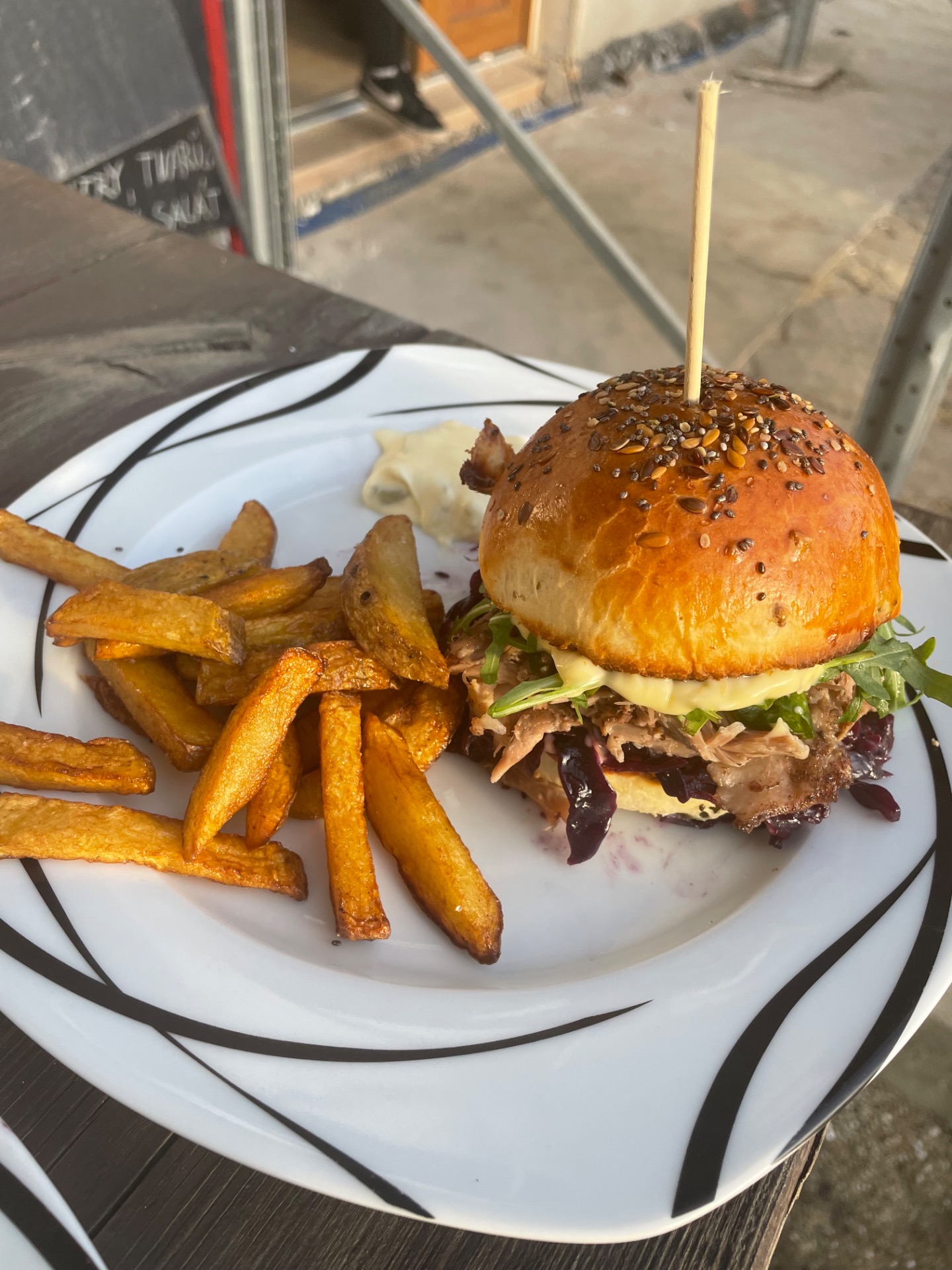 Burger s trhaným kachním masem, který nám již jednou velmi pomohl - díky němu jsme mohli vyrazit na výlet do Barcelony!